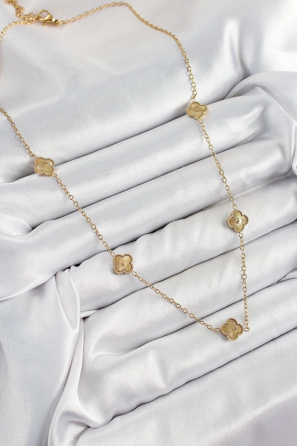 316L Çelik Yonca Model Gold Renk Kadın Kolye